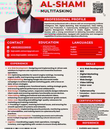 🌍 Professional Translation: Providing precise translation in Arabic, English, Turkish, and intermediate Russian (70%).