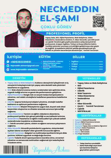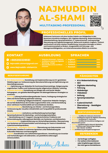 Hey !👋 I’m Najmaddin Alshami versatile professional with expertise across various fields and a passion for driving innovation and success. I specialize in managing projects, building high-performing teams, and delivering impactful solutions in dynamic environments.